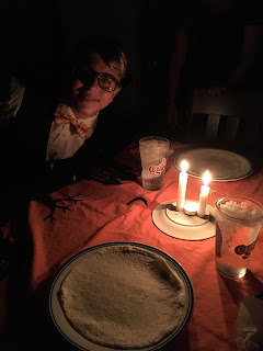 Brace yourself for a very long post shouting out my adoration and praises of my little Budster! Not your thing? Errrr.....have you ever even read this blog before, that's basically all I do! I've missed quite a bit of blogging....my excuse, my mother-in-law was visiting me while I was on my period! I am currently patting myself on the back because we ALL survived! Drum roll please, now let the adoration begin! I'll start with last night. Yesterday, Shane and I celebrated our 15th wedding anniversary. Usually when I think of an anniversary, I like to think of flowers, a romantic dinner out....instead, ours was filled with taking the in-laws to the airport and a Boy Scout meeting....both rate highly on my romantic scale!!!! Ha! Anyway, when Buddy and I returned from our Scout meeting I started making dinner, he quickly banished Shane and I to our room. Honestly I wasn't sure what was going on because he was taking a really, really long time (I was also really hungry so my time perception may have been a little skewed). When he finally knocked on the door to retrieve us, all the lights were out and he was wearing a suit. Shane and I decided we should get gussied up too....